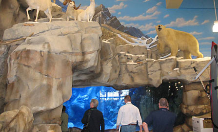 Facts: Hammerhead International was called on once again by the great Development Team of Cabela’s to participate in the construction of their latest store. We installed two 21 foot long FRP Aquariums that will hold 8,000 gallons of water each. Each of these Tanks had one 20 foot long by 7 feet tall monolithic acrylic viewing panel. The FRP Catwalks went the entire length of the two tanks. This was a new concept for the upcoming construction for the next two years. We look forward to many continued years of work with Cabela’s. |