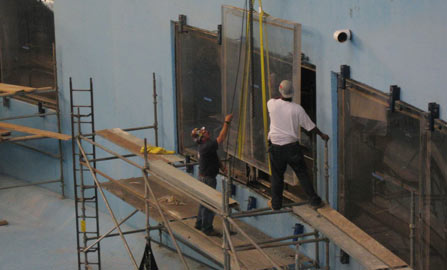 Facts: Hammerhead International, had the great opportunity to restore a part of history by bring new life into the Seven Seas Dolphinarium. The panels that were removed from this 27 year old facility were restored to their original luster and finish. The panels were then re-installed and sealed and now awaiting the return of the Dolphins. The new and improved Seven Seas will be open to the public again Spring 2010. |