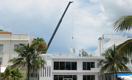 Facts: Hammerhead International is very proud to have been part of this first of its kind   Swimming Pool Project. Two acrylic panels (27.5' long each) joined together to create this dramatic 55 foot   long concave lap pool.  The acrylic sections are 7 feet wide and suspend 3 feet into this modern day home.  This   project took precision rigging, careful planning and execution by our Hammerhead Team. This was one of the more   difficult swimming pool projects that we have worked on, but the end result is   nothing short of amazing.  |