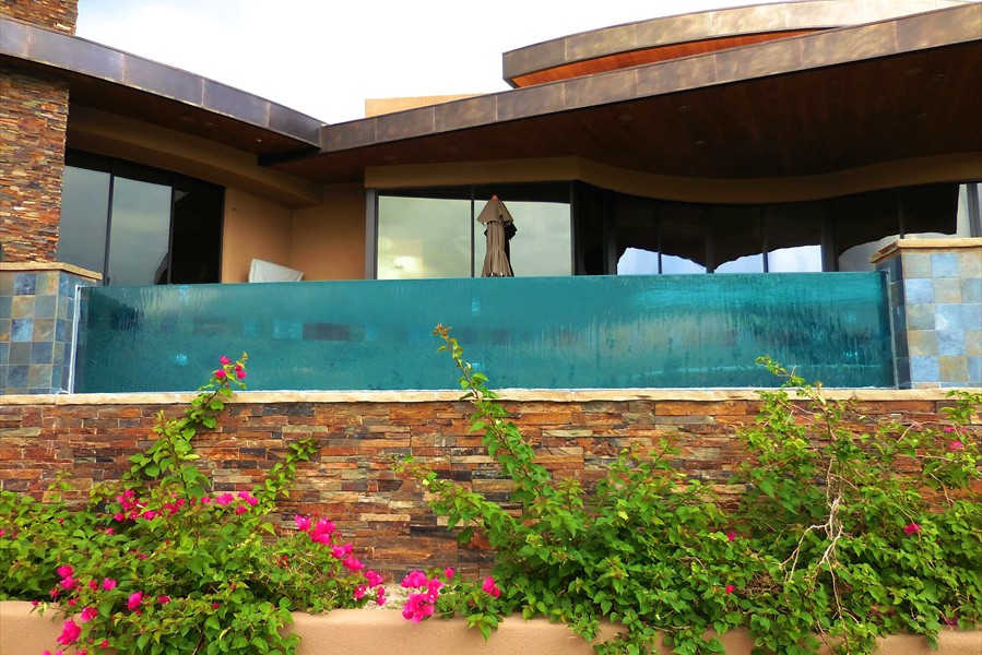 Facts: Situated near the Santa Catalina Mountains and the Tortolita Mountains is Oro Valley, AZ. Oro Valley hosts a large number of residences including the Giant Saguaro Cactus. Growing up to over 70 feet tall, these tall Saguaro can only be found in very specific climates. With stunning desert landscape, it’s no wonder why photographers from all over the world come to get a glimpse of what Oro Valley has to offer.  This private residence took advantage of this stunning beauty by building a beautiful home overlooking Oro Valley. The home features a spectacular pool with an 18 foot long viewing panel, allowing unobstructed views of the Saguaro Cactus and the majestic Catalina Mountains. The tranquil sound of the infinity Edge pool trickling down the acrylic panel gives the homeowner a relaxing ambiance throughout the day and into the night. |